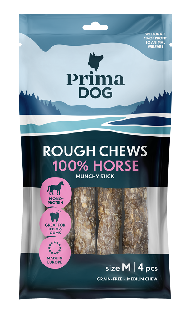 PrimaDog Rough Chews Munchy närimiskondid 100% hobuselihast M,4tk,112g